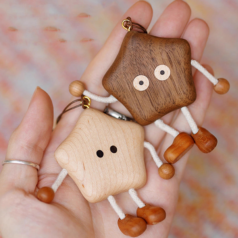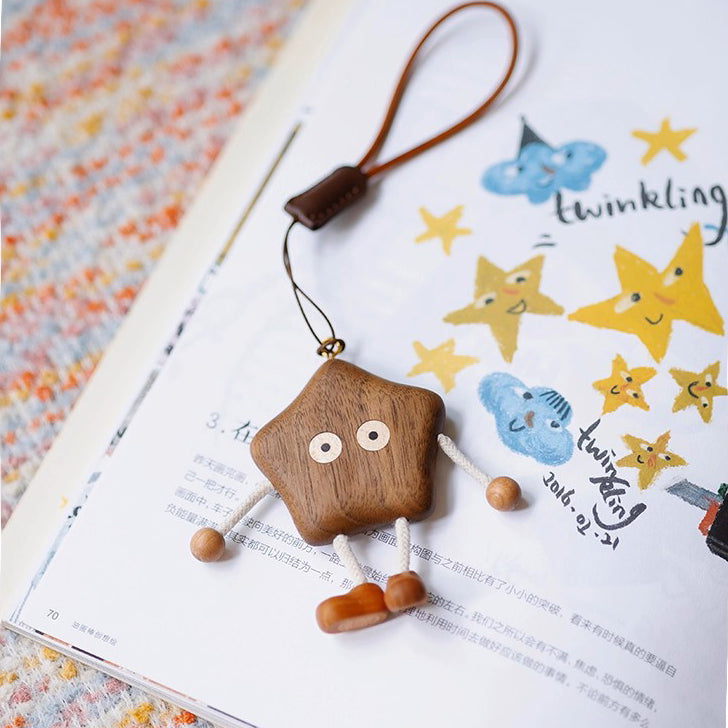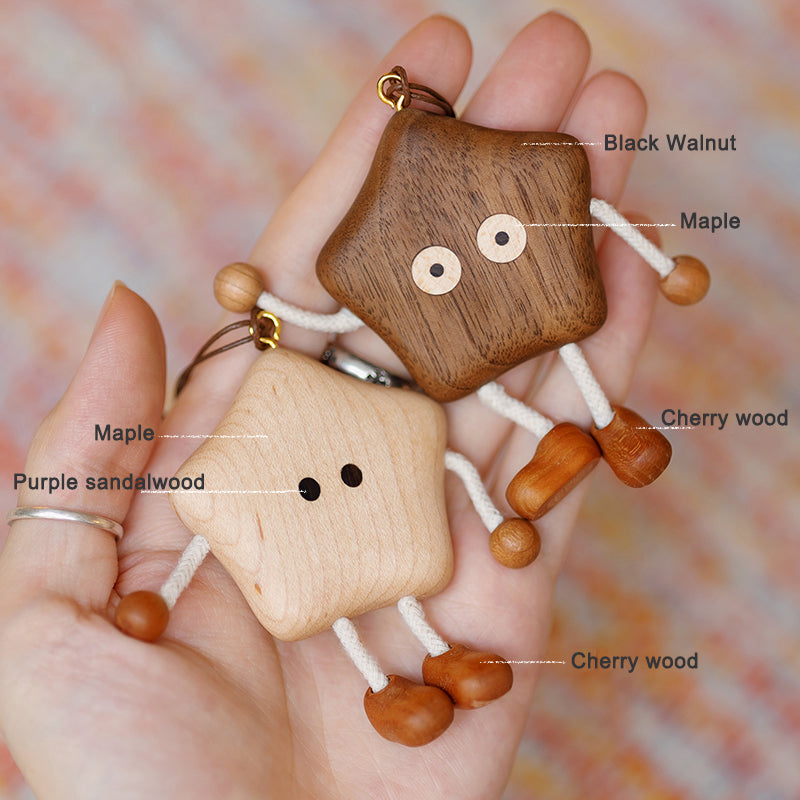 Lucky Star Keychain - Handcrafted Wooden Charm for Keys & Bags